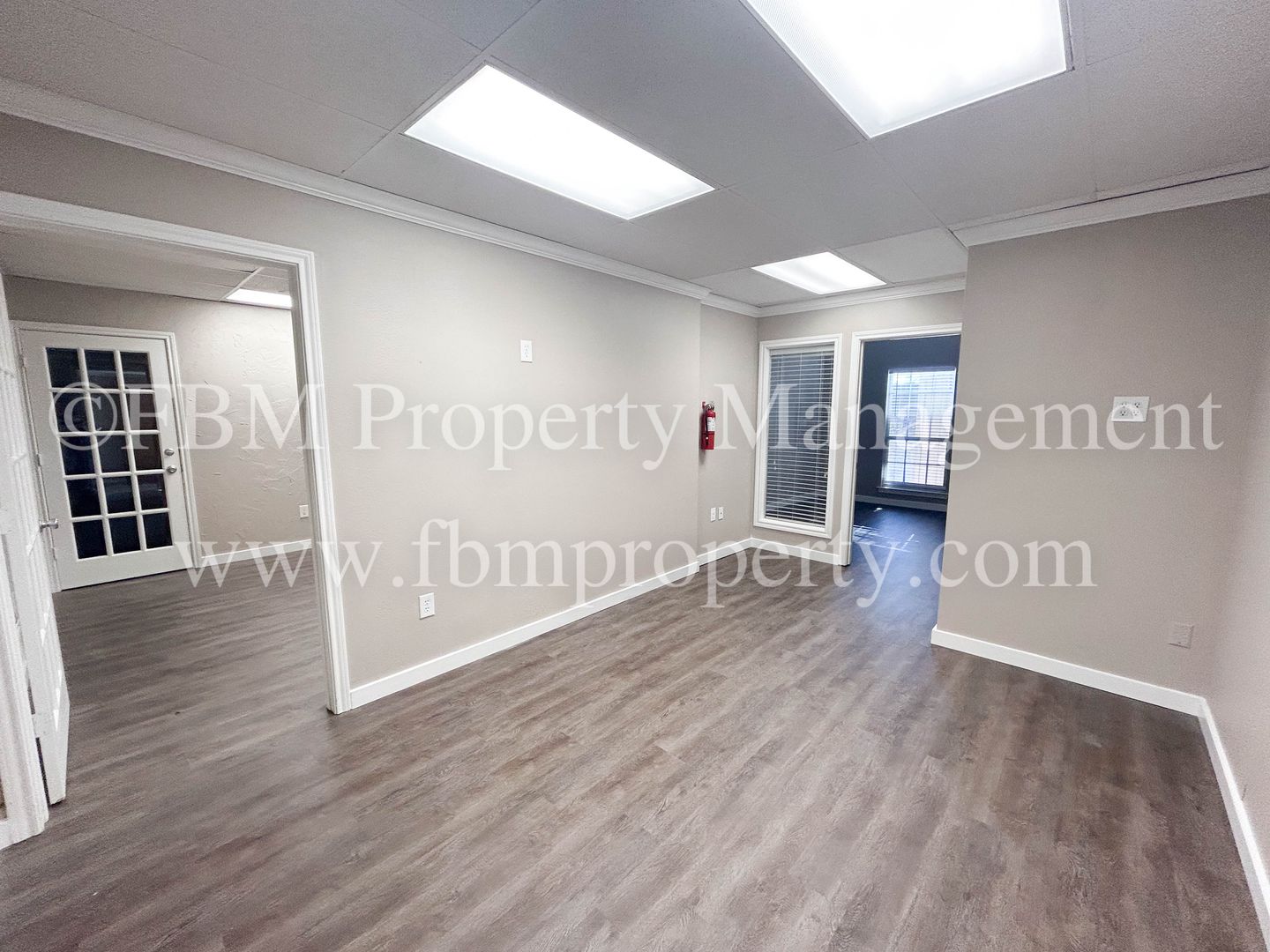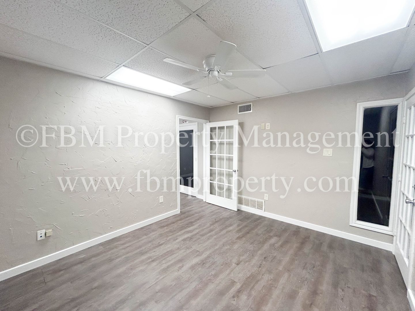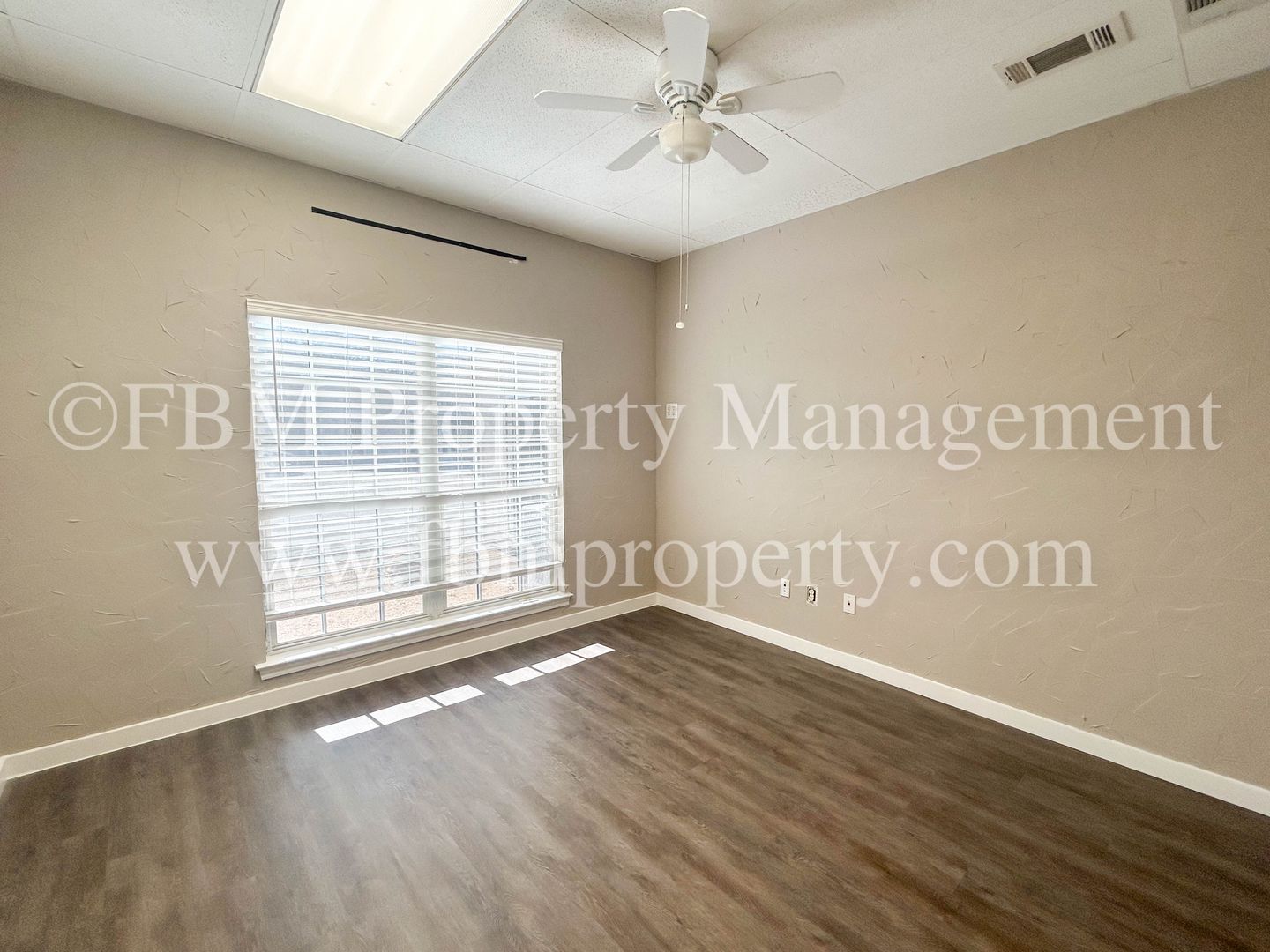 Located at 1905 Ennis Ave, Unit 204, this commercial lease offers versatile private offices and large work areas in Ennis, TX. The space features a mix of tile and wood‑inspired flooring, ceiling fans, central heat and air, and blinds throughout. Solar screens help manage sunlight while lawn care is included. Open parking provides convenient access for staff and visitors. Ideal for businesses seeking a well‑maintained, functional office environment.