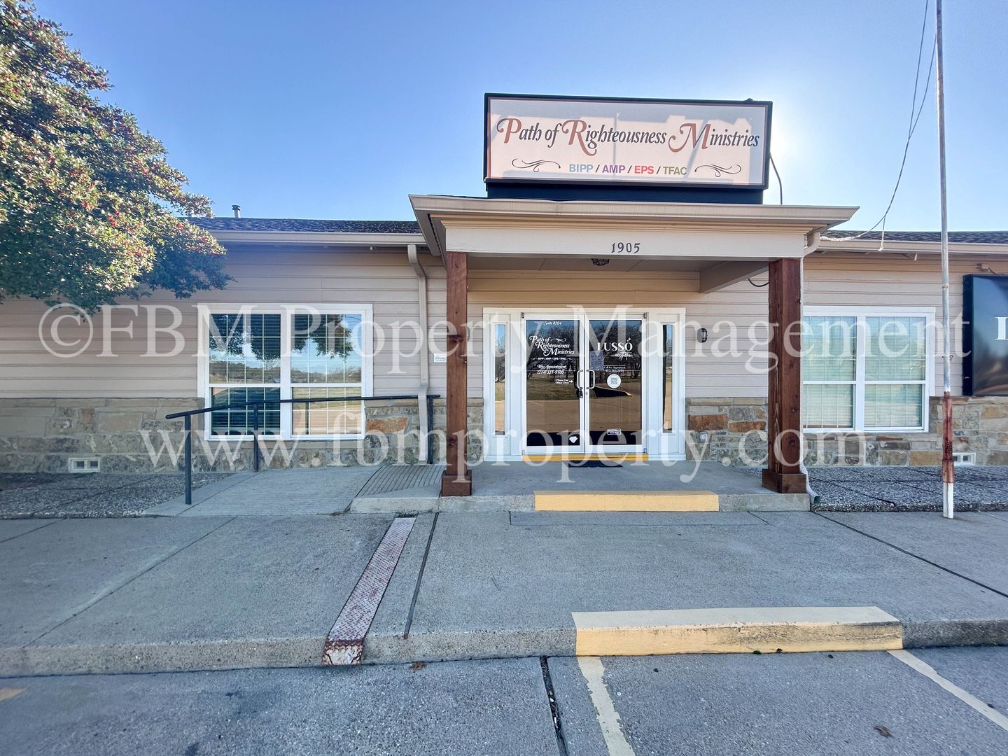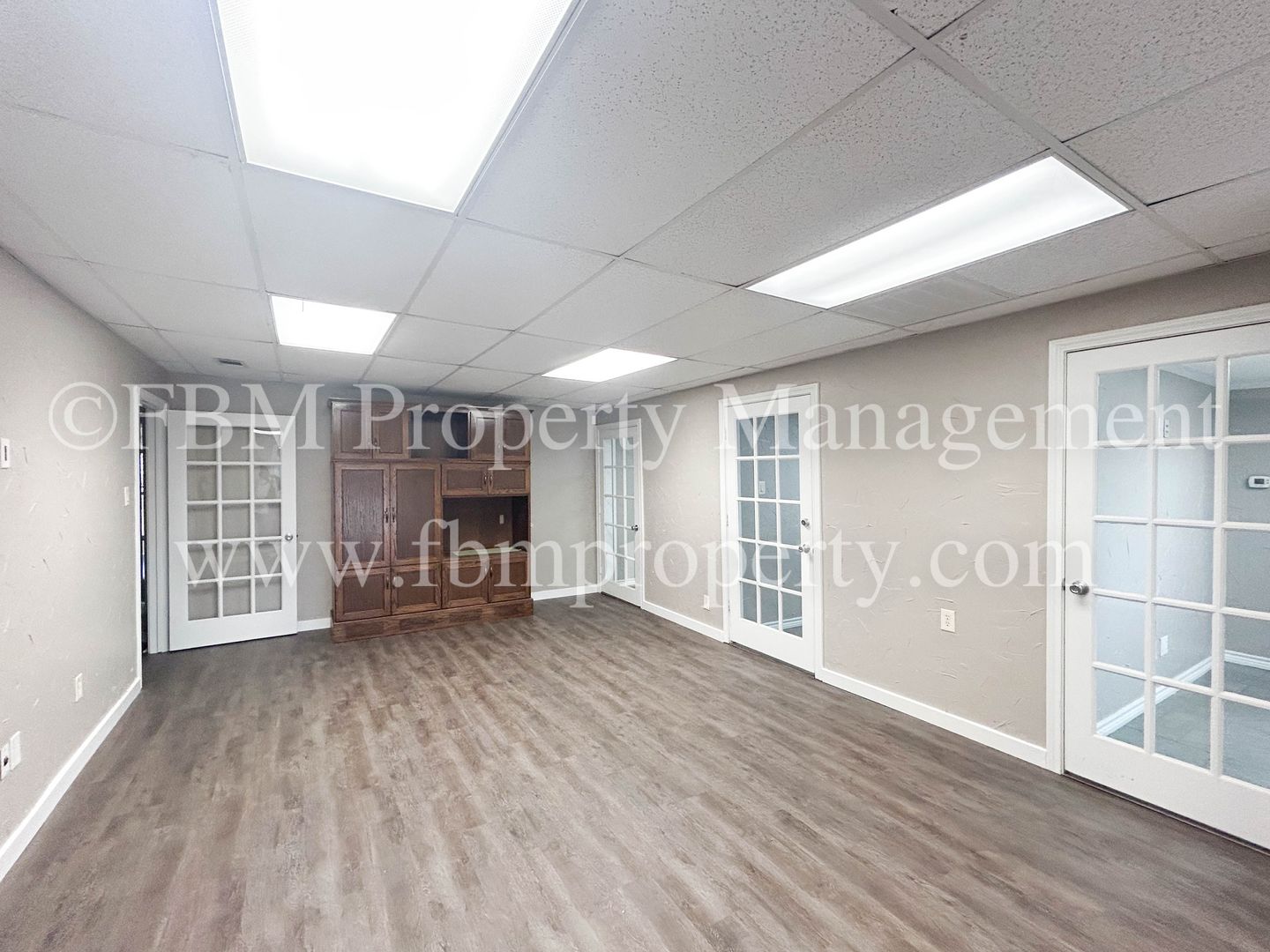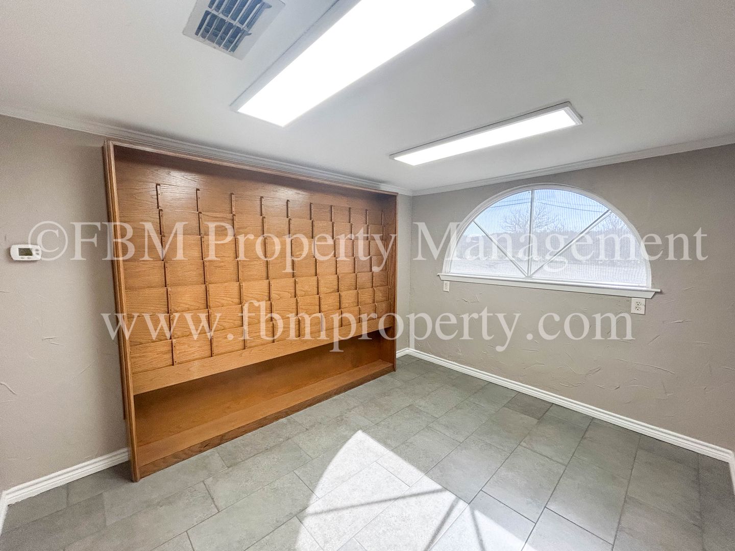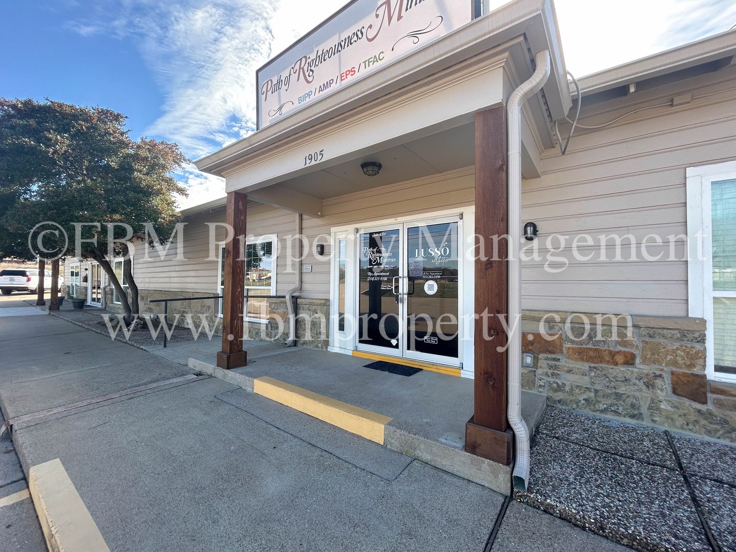 Located at 1905 Ennis Ave, Unit 204, this commercial lease offers versatile private offices and large work areas in Ennis, TX. The space features a mix of tile and wood‑inspired flooring, ceiling fans, central heat and air, and blinds throughout. Solar screens help manage sunlight while lawn care is included. Open parking provides convenient access for staff and visitors. Ideal for businesses seeking a well‑maintained, functional office environment.